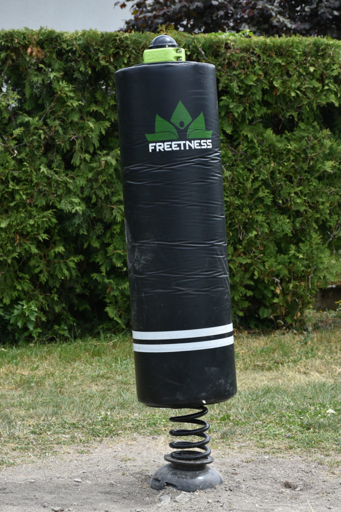 Cet espace de fitness en plein air est composé de sept appareils en libre accès pour les adultes et adolescents : vélo elliptique, rameur, push and pull multiprises, squat machine, combiné abdos lombaires, sac de frappe, combo speed.