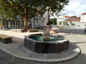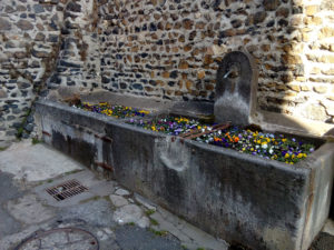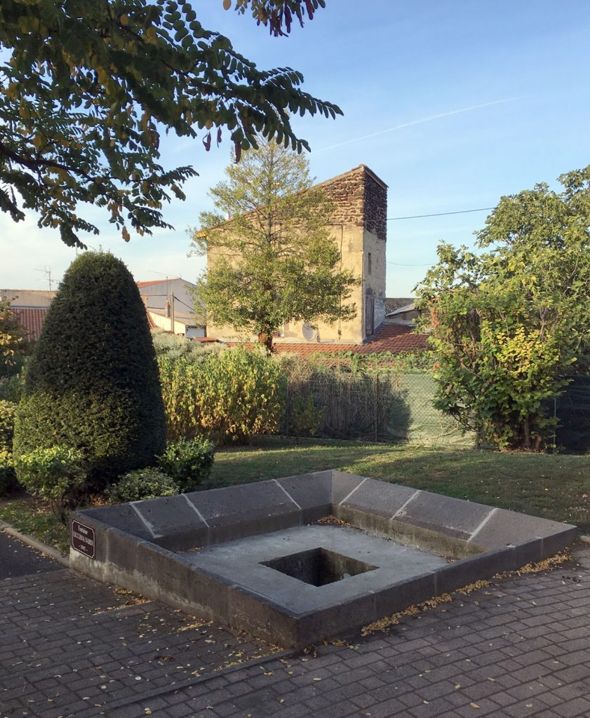 Fontaine lavoir située au centre du village place de l’Église, formant un bel ensemble avec un lavoir et une croix.